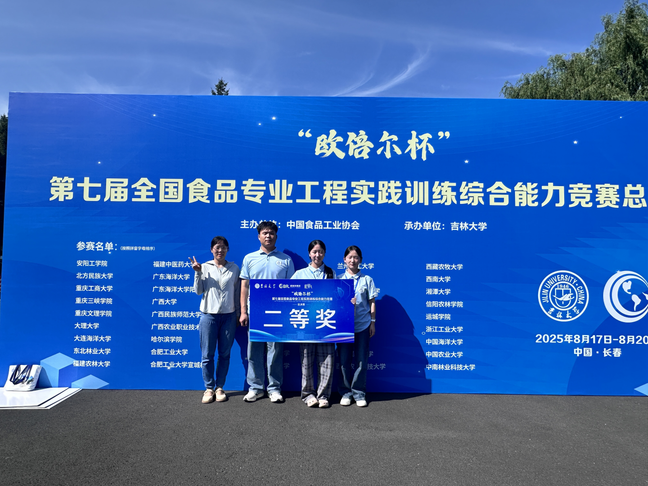 近日,“欧倍尔杯”第七届全国食品专业工程实践训练综合能力竞赛总决赛在吉林大学举行。本次比赛共有全国45所学校代表队135名选手参赛。经过激烈角逐,我校食品学院胡梦苹、申子航和程琪等3位同学组成的参赛队,在黎冬明、颜贤仔和许海霞老师的指导下,荣获全国总决赛二等奖。