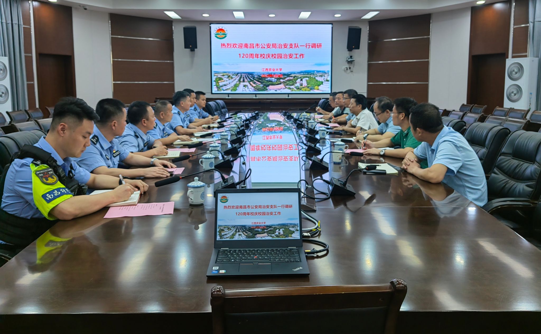 9月8日下午,南昌市公安局治安支队纪委书记张小泉在经开分局治安大队、下罗派出所等单位负责同志陪同下莅临我校调研指导校庆筹备工作及安保预案制定情况。副校长游金明,党办校办、校庆筹备办、校友工作服务中心、保卫处等相关部门负责人参加调研活动。