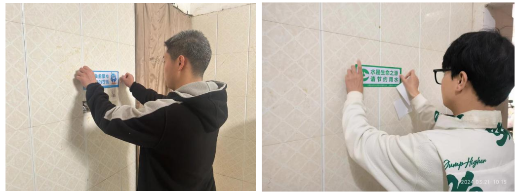节水宣传从细节做起。3月19日至3月24日,后勤服务集团公共机构节能办公室工作人员携手绿源协会学生,共同在办公楼栋、学生公寓、教学楼、科技实验楼栋的公共卫生间,以及食堂、商户经营店面的后厨等场所粘贴节水宣传标语,做到节水宣传“全覆盖、全知晓、全落实”。