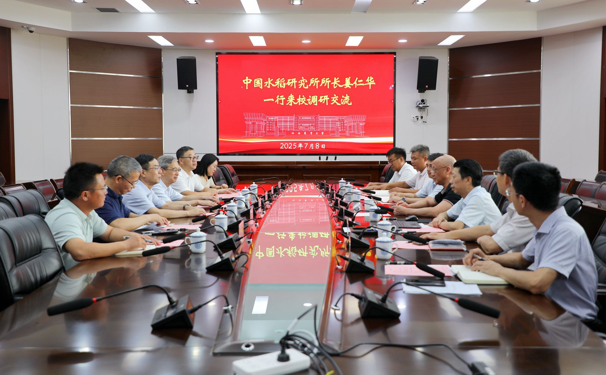 7月8日下午,中国水稻研究所所长姜仁华一行来校调研交流。校党委书记黄路生院士,副校长游金明、曾勇军,党办校办、人事处、科技处、农学院的负责人参加座谈。