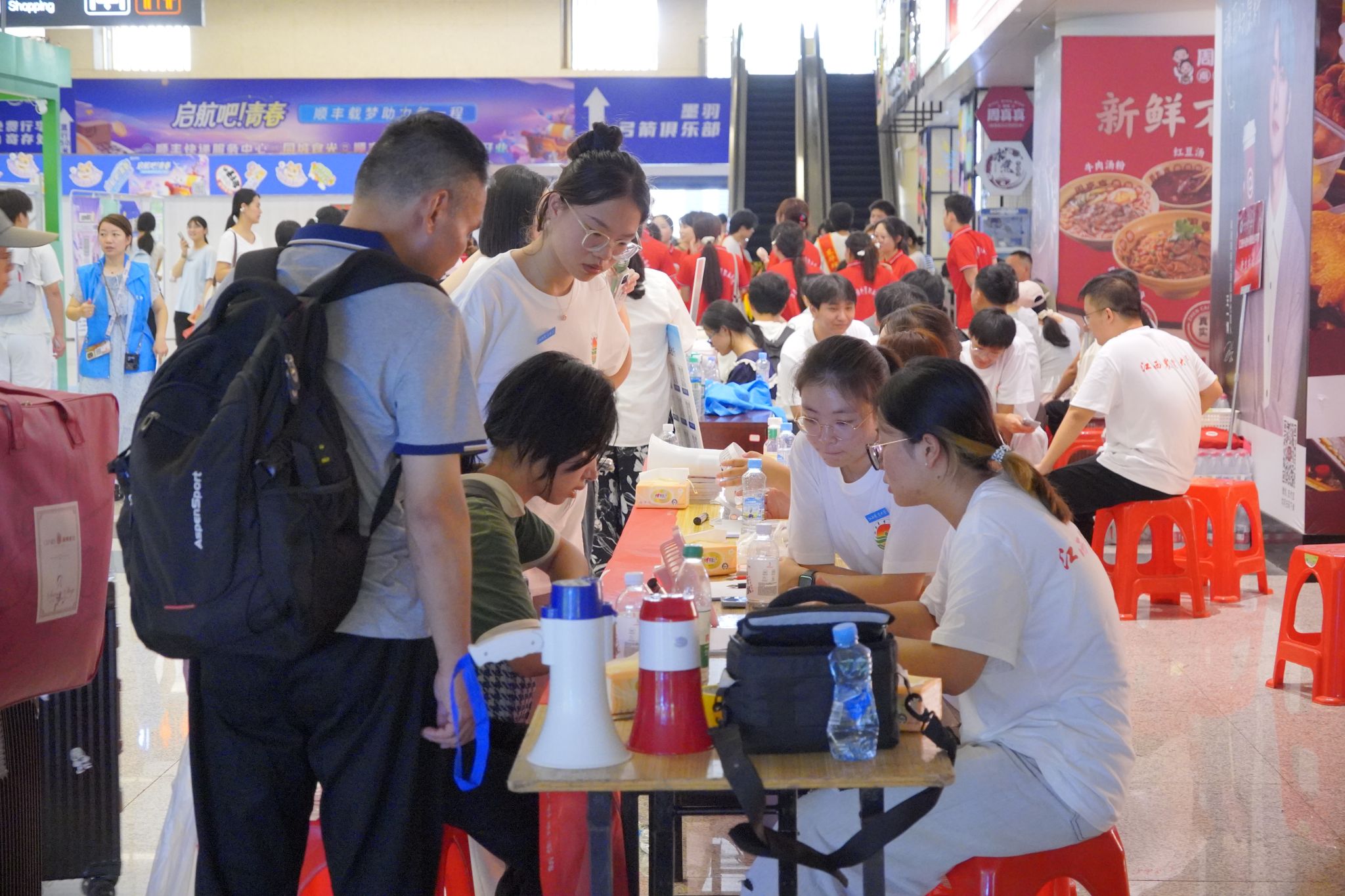 为切实解决新生及家长初到陌生城市的交通困扰,学校重点在南昌西站、南昌站、蛟桥地铁站等客流量大的交通枢纽,设立标准化迎新接驳点。每个接驳点均配备15-20名专属志愿者,他们自清晨6点起便到岗就绪,身着统一标识服装,手持“PG电子麻将胡了2技巧-麻将胡了2规则迎新指引”牌,在车站出口、地铁口等显眼位置主动迎候新生——看到携带行李的新生及家长,便第一时间上前问询,协助搬运行李;面对 “报到流程怎么走”“大巴多久一班”“校园宿舍条件如何”等高频问题,志愿者们结合提前培训的内容,耐心细致地逐一解答,用清晰的讲解缓解新生及家长的焦虑。针对自驾前来报到的新生家庭,学校同样做好周全保障:在校园周边主要路口、高速出口等交通节点,不仅设置了清晰醒目的迎新引导标识,更增派志愿者驻守指引——他们顶着烈日,手持指挥旗,协助疏导过往车辆,引导自驾车辆有序驶入校园指定停车区域,有效避免校园入口及周边道路拥堵,用志愿力量打通新生入校的“最后一公里”。