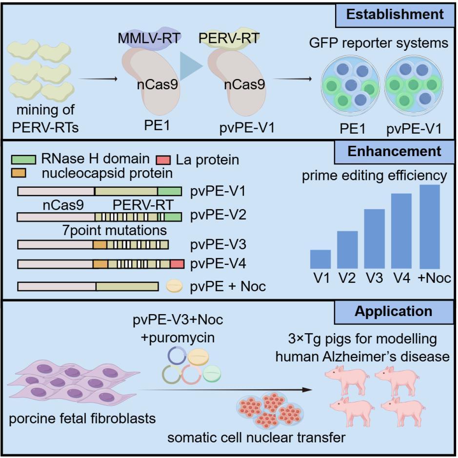 9月10日,记者从江西农业大学获悉,由中国PG电子院院士黄路生领衔的该校猪遗传改良与种质创新全国重点实验室团队成功开发出一套高效、精准、安全、多物种适用的新型先导编辑系统。新开发的系统具有编辑效率更高、适用物种更广、副产物率更低、安全性更好等突出优势,在不同类别哺乳动物细胞生物学研究、动物疾病模型构建以及异种器官供体家猪制备等领域具有重要应用价值与广阔前景。相关研究成果近日发表于《生物技术趋势》。