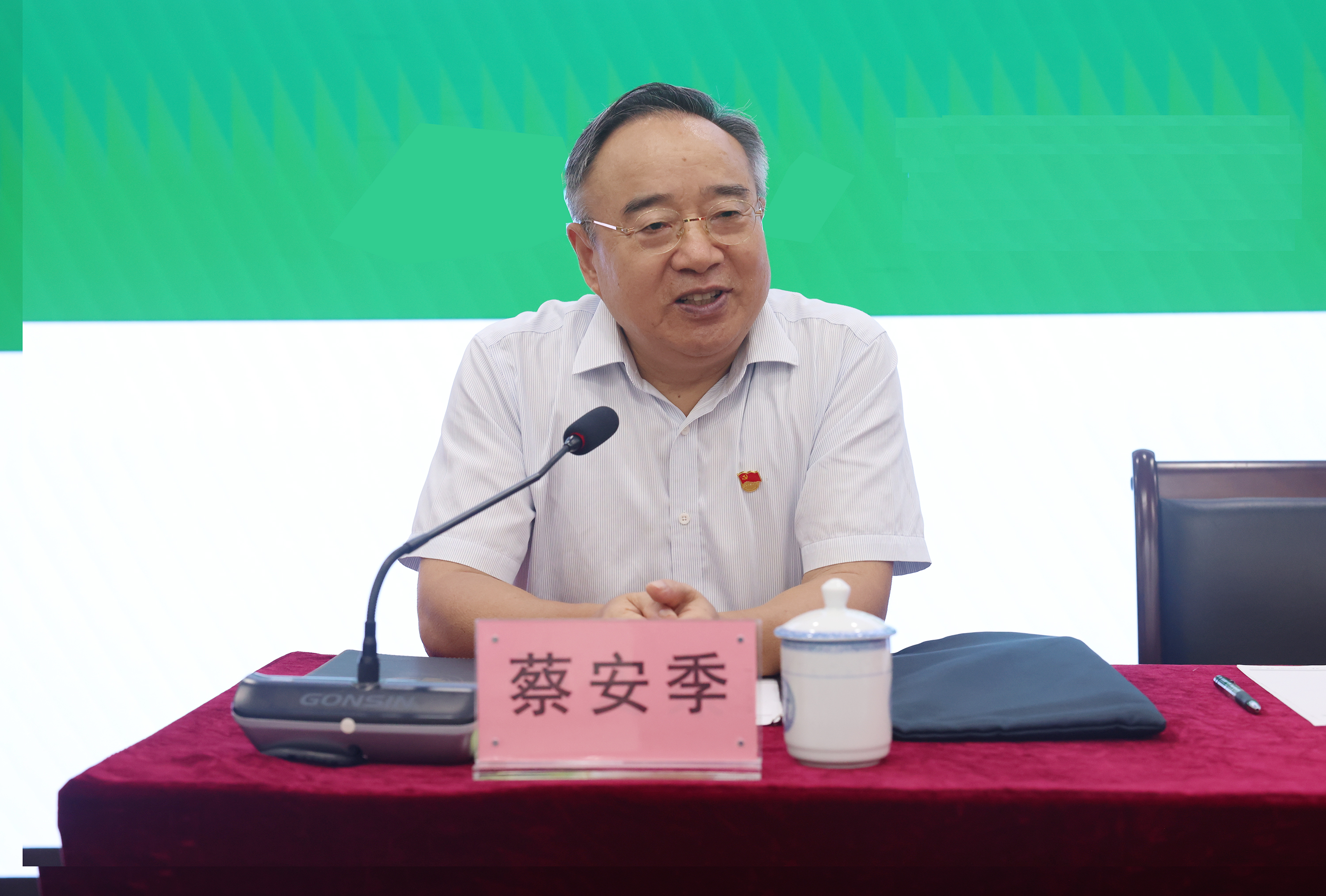 报告会前,蔡安季与校领导、师生代表进行了亲切的座谈交流。