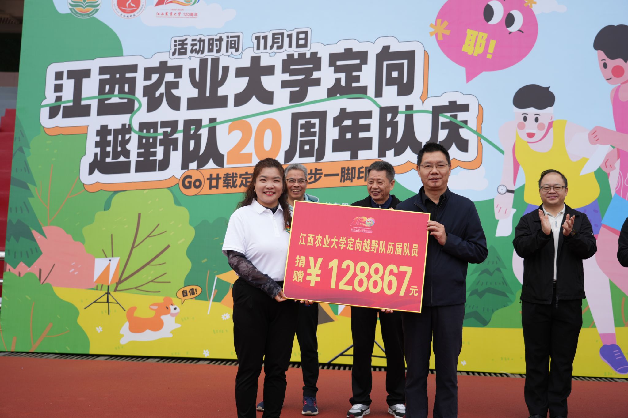 活动现场,王文君代表学校接受校定向队专项基金捐赠。据悉,历届队员捐赠总金额128867元,主要用于学校定向越野事业发展。