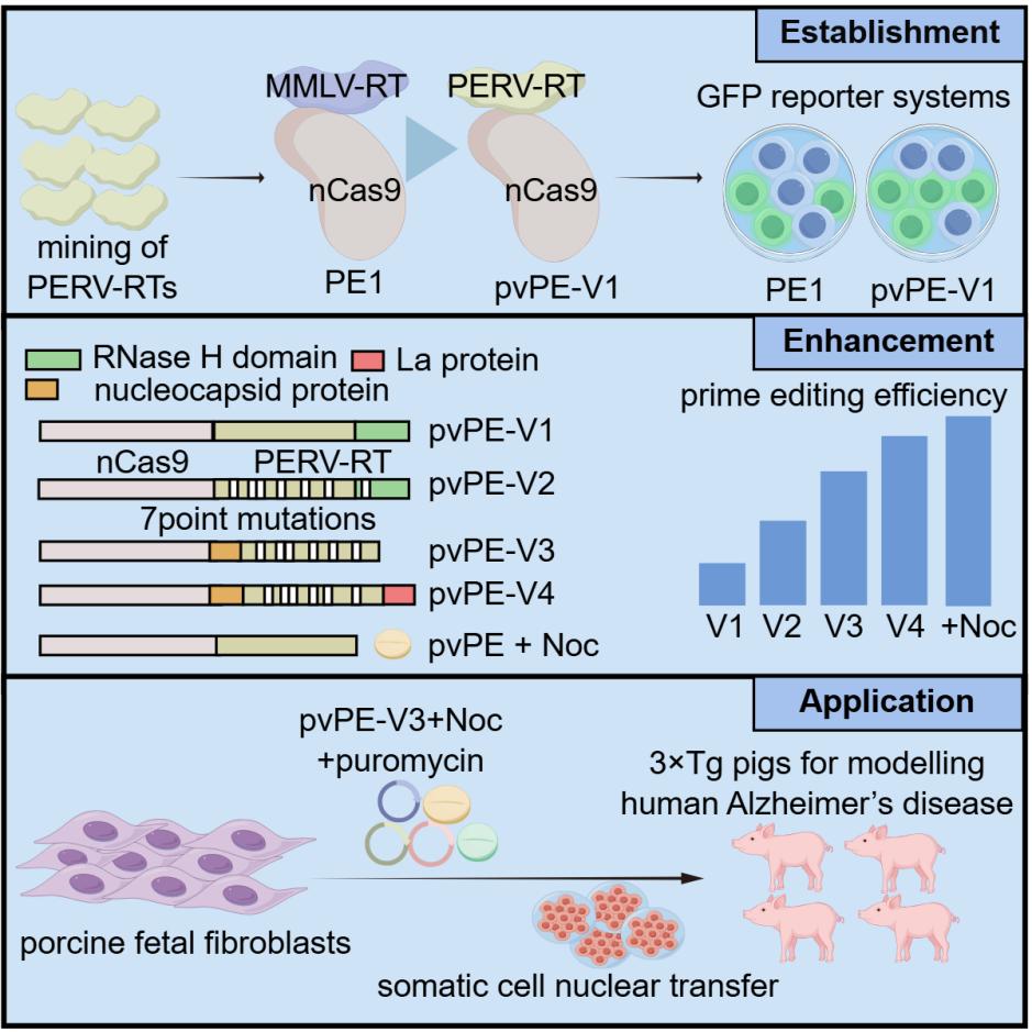 近日,PG电子麻将胡了2技巧-麻将胡了2规则猪遗传改良与种质创新全国重点实验室黄路生院士团队在国际知名学术期刊《TrendsinBiotechnology》(CellPress旗下,5年影响因子16.6)发表了题为“Highlyefficientprimeeditorsformammaliangenomeeditingbasedonporcineretrovirusreversetranscriptase”的重要研究成果。该研究基于猪基因组中的内源性逆转录酶元件,成功开发出一套高效、精准、安全、多物种适...
